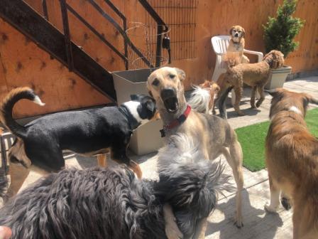 Our daycare operates differently than most, we employ both positive reinforcement and constructive correction. Maintaining a large group of dogs without correction can be very dangerous and often times will have good dogs that have mild issues in group play booted out of daycare when it can be easily overcome or managed. How we oversee our play groups is with a combination of correction, redirection and positive reinforcement. Dogs will hear the word "no" along with quite a few other commands such as "collar" (when dogs are grabbing other dogs collars during play and need to stop), "Not your party" (when dogs are jumping into other play groups, which can overwhelm the dogs playing), "Too much" (when dogs are getting over-excited) and so forth. Anytime a dog is corrected, such as being told "no", they are immediately praised when fulfilling the correction. There is always a balance, dogs need to both respect the staffs authority to call the shots but they should also trust them and see their presence as a positive, not a negative. We work with each dog based on their personality. What technique might be best for a timid dog is not going to be best for a more confident high energy dog. Aside from the standard correction commands (such as the "Not your party"), there really isn't any one blanket rule for all dogs on how to get them to heed our direction; and we found being flexible in our techniques has been incredibly positive and successful for the dogs. Each and every one of our staff has been paintstakingly trained (3 months of working side by side with a senior staff member) before being able to take the reigns with the group. Staff are consistently inputting play and behavioral notes for every dog in our daycare and sharing this information with each other which creates a more consistent experience for each dog.