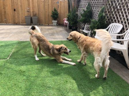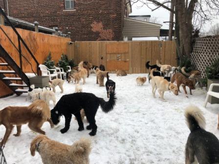 Dogs have access to the backyard all day both for play and for washroom breaks. Reinforcing and maintaining outdoor washroom training is important, we completely understand that. Because we encourage play in the space, dogs are drinking constantly throughout the day, so we give them consistent opportunities to go to the bathroom in the yard. The yard is kept clean; we clean as the dogs go and we monitor bathroom behavior/patterns. Our cubby system outlines their washroom behavior for the day and any information important to note (diarrhea, constipation, expelling foreign objects (yup, that happens)). Puppies will get extra attention to ensure they learn to go to the bathroom outside and not in the dayare. All dogs are monitored closely for indoor washroom behavior; we try and reinforce that dogs cannot go to the bathroom inside the daycare. The occasional accident happens (we clean it up right away), but repeated inside accidents affects the other dogs in the daycare (since they are running and wrestling and playing); no one wants their dog coming home smelling like urine! If a dog is still learning not to go to the bathroom inside, we stop them as quickly as we catch them starting, rush them outside (not scolding them, just rushing them outside) and we encourage them to finish and wait outside until they do. Once they do, they get a lot of praise. We will keep doing that until it clicks.